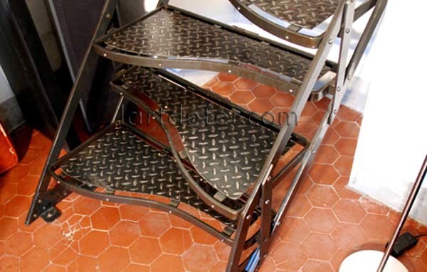 Chaque marche est également percée et rivetée à chaud au support de marches.